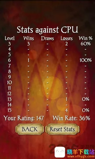 3、贴心细节设计:多套牌背图案供选择,可满足玩家的视觉个性化需求;AI难度能自由调节,适合不同水平玩家挑战;还提供详细历史战绩统计,方便玩家复盘和分析策略。