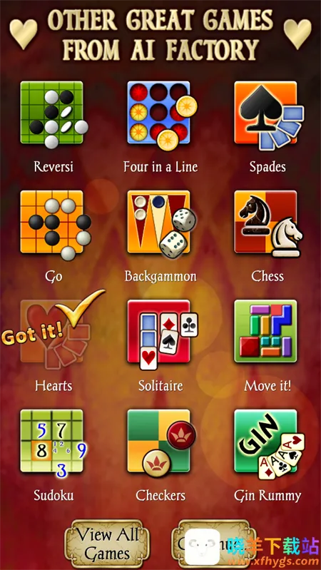 红心大战2026官方最新版本是一款安卓益智休闲游戏,收录众多卡牌与棋子小游戏。玩法依规则出牌,目标获100分结束。特色有灵活卡牌传递、可选规则、对战模式。优势是多套牌背、AI难度可调、有历史战绩统计。