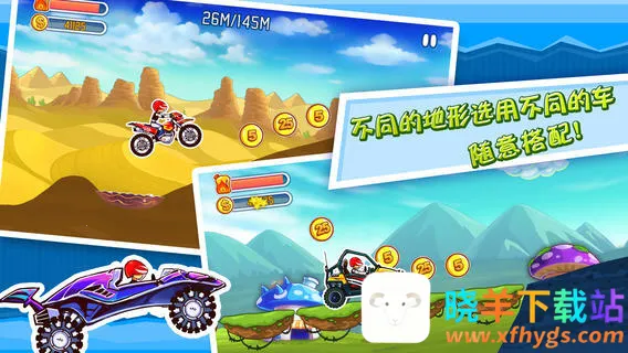 2. 游戏的横版地图设计轻松易上手,玩家只需保持车身平衡就能顺利过关,体验感十足。
