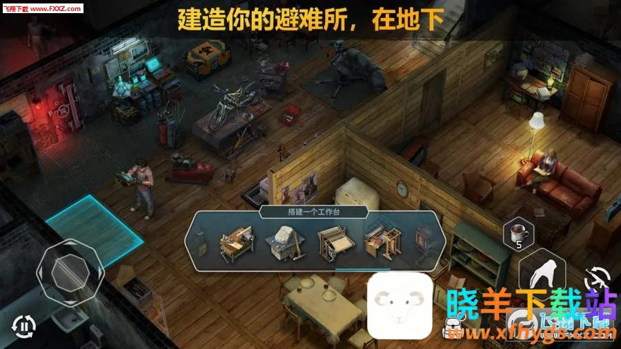 2. 多层次建造与制作让基地发展极具深度与自由度。能在地上与地下自由搭建庇护所,还可制作工具与防御设施,随心所欲打造属于自己的末日家园。