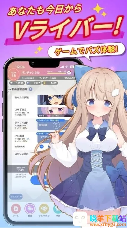 如果你想体验当虚拟主播的感觉,那这款虚拟主播模拟器就很适合你。在这里,你能化身为虚拟主播,每天按时开播展示自己的特长,比如电竞、吃播等。它玩法丰富,进入游戏点击下方中间按钮就能开始闯关,体验打造人气主播的过程。点击屏幕可加快进度。主界面右侧能更换服装自定义形象,下方动画按钮可与其他虚拟主播制作动画,左侧书本按钮能进入剧情模式解锁新内容。通过不断闯关积累人气提升知名度,还能成为顶级偶像。它有自由度极高的自定义玩法,发布视频能实时收到评论,频道订阅数和收入同步增长。完成主线任务、与其他角色互动、挑战小游戏都能提高人气。而且操作简便易上手,还有全明星声优阵容,能让你沉浸在主播模拟体验中,感受爆红和经营的乐趣。