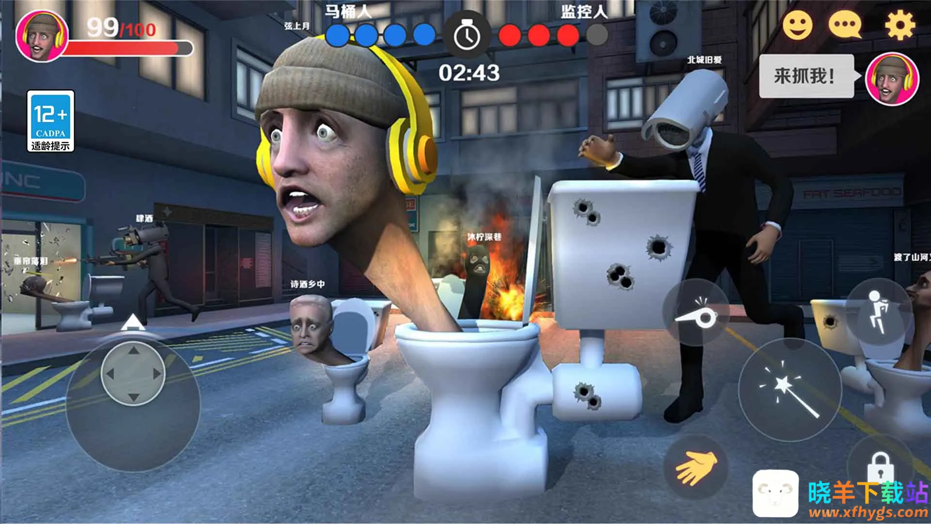 嘿,想知道马桶人和监控人谁更厉害吗?那就来玩玩这款超有趣的游戏吧!这是一款关于马桶人和监控人的沙盒联机躲猫猫游戏。游戏里有两个阵营,监控人是狩猎者,要在规定时间内找出变身的马桶人并抓住他们;马桶人则要伪装成地图中的物品躲避追击。它能满足你对趣味对战的需求。游戏特点超多,真人联机对抗,欢乐无穷,还有滑稽搞笑的嘲讽动作和音效,开着语音就能和小伙伴畅聊。玩法也很丰富,能熟悉角色技能,探索精美地图找宝藏,巧妙利用道具和技能应对各种情况,还能和好友组队合作。操作简单,各个年龄段都能轻松上手。不管你是想体验紧张刺激的追捕,还是享受欢乐的伪装躲避,这款游戏都能给你带来独特又搞笑的体验,快来试试吧!