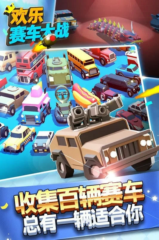 欢乐赛车大战特色十足。**拥有近百辆造型各异的赛车**,从冰淇淋车到坦克装甲车,千奇百怪超乎想象。30多款风格独特的皮肤,能打造个性化赛车。8张不同地图场景,还有多款隐藏赛车与神秘彩蛋待探寻。独树一帜的画风,带来别样游戏体验。全新开房间模式可邀请好友对战,真人实时对决能随时和全服玩家PK。操作简单,道具多样,物理引擎超真实,让玩家尽享赛车碰撞对决的快感,收集皇冠成为王者。