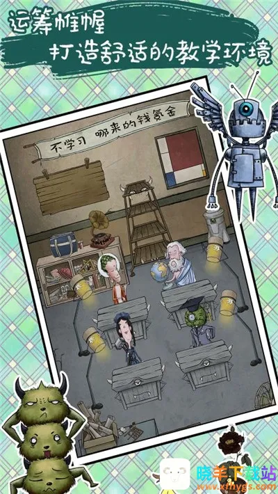 2、多样画风玩法吸睛:游戏建造风格多样,教师安置有别,学生造型稀奇古怪,画风与玩法十分亮眼,还能找到诸多知名动漫电影小说元素。