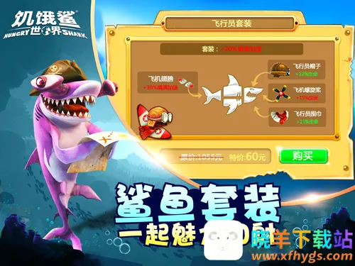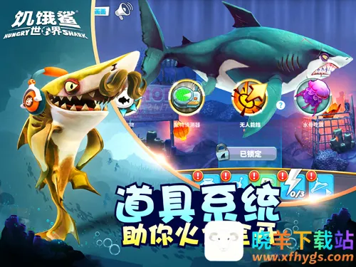 4. **特色配件装备**:能为鲨鱼装配耳机、雨伞、激光束等有型配件和特殊装备,提升鲨鱼战斗力,打造个性鲨鱼。