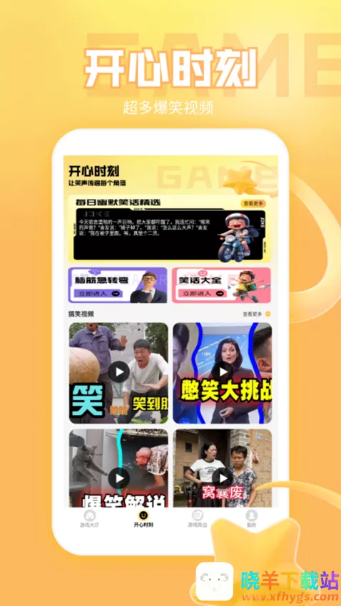 无敌幸运星乐园安卓版手机版特色丰富多样。**娱乐生活**:大量搞笑视频为生活添趣,带来开心心情。**实用攻略**:助用户获取众多实用游戏攻略,了解更多技巧。**快乐解压**:观看搞笑视频能快速释放压力,放松身心。**及时更新**:平台及时推送最新游戏资讯攻略。**精选笑话**:推荐各种幽默好笑的精选笑话。**高清壁纸**:提供超高清精美的游戏壁纸,可随心下载美化桌面。