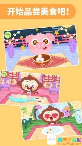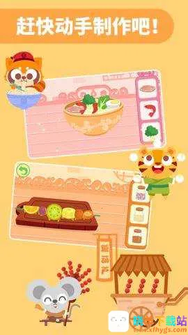 3. 独特玩法与场景:玩法独特,可随意品尝美食,每个铺子食物不同。场景卡通可爱,好吃的东西应有尽有,能增强宝宝对美食的了解,培养动手能力,带来丰富游戏内容。