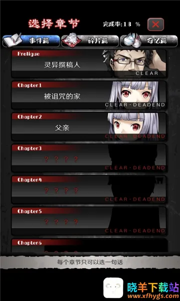 这款日式文字推理游戏为玩家带来独特体验。玩家需调查灵异事件,通过收集和分析线索揭开真相、找出凶手。游戏操作简单,界面简洁,采用点触式互动交流,还有多结局设计,随时都能开启挑战。新手按攻略,先观察主画面,点右上角感叹号推进对话,找出奇怪处点击确定发现异常。攻略剧本丰富,有事件篇、碎片篇、奇忆篇等。资料馆能查看图片,部分插图要进死路才能获得。特色方面,剧情选项影响结局,任务有新要求,需持续探索灵异事件,观察细节、分析对话。亮点在于考验规划能力,随剧情推进要制定新方案,观察表情动作能带来丰富趣味挑战。