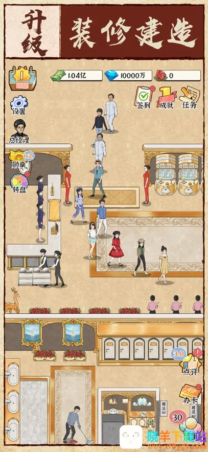 浴场之王是一款竖屏浴场经营休闲游戏。玩家当老板,在城市中心开店,通过装修与服务吸引客流。可自由设计布局、解锁丰富洗浴项目、规划设施,还有多种小游戏,能体验从单店到连锁的成长,快来打造顶级浴场。