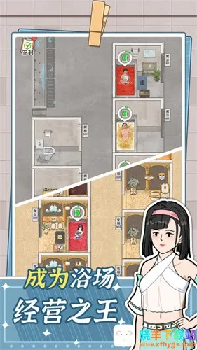 这是一款能让玩家充分体验经营浴场乐趣与艰辛的游戏。玩家将扮演浴场老板,从装修、制定策略、招聘员工到举办活动等,事事都要亲力亲为。