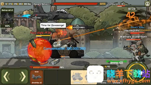 游戏玩法多样,开启战斗后,左侧方向键控制移动,右侧射击,下方有卡牌可使用,还能切换英雄,相同卡牌连在一起效果更强,左侧支援系统可召唤直升机轰炸,完成关卡能获奖励。