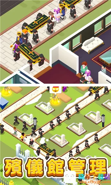 放置型殡葬大亨是一款模拟经营游戏,玩家要打理店铺,为客人安排葬礼。这款游戏操作简单易上手,适合所有年龄段玩家体验。游戏中,玩家起初只有一个小殡葬店,随着业务扩张,能提供更多服务。要管理陵园,按顾客需求提供不同价格墓地,填满后还需扩张。此外,还有多种丰富殡葬服务,要合理规划区域提供更好服务。游戏有着卡通画风,增加了趣味和玩法,还有很多经营任务可不断挑战,让玩家自由经营享受乐趣。在欢乐的游戏过程中,合理管理获取资金,体验更多有意思的部分。如果你喜欢经营模拟类游戏,不妨试试这款放置型殡葬大亨。