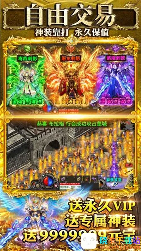 经典职业与多样玩法:战法道三大经典职业,有合击和绿毒元素,玩法经典,如热血传奇再现、装备回收、神装觉醒转职变身、万人攻沙等。