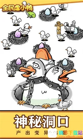 3. 通过多样进化获得诸多造型诡异的小鸭,记得收集并点亮完整图鉴。游戏中设有神秘洞口,从中可以产出许多发生变异的特殊鸭蛋,为玩家带来更多惊喜。