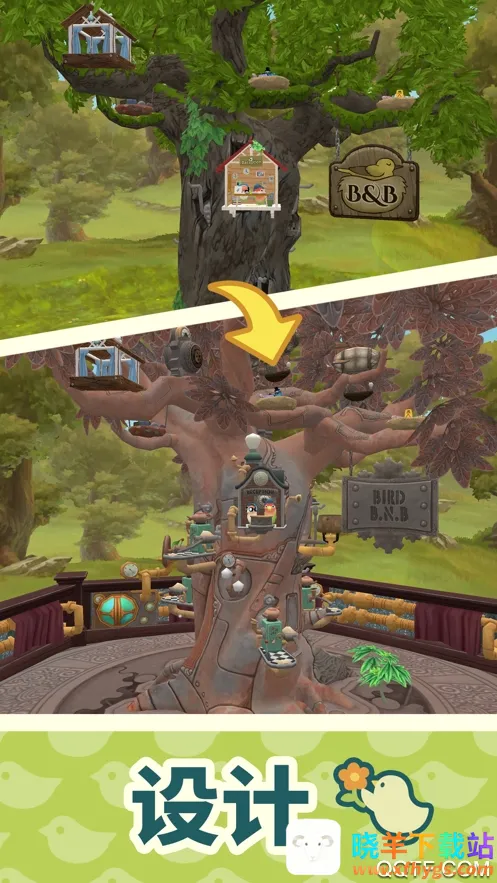 2. 呈现细腻全景画面,自由布置树木空间,吸引独特访客,体验惊喜互动玩法。