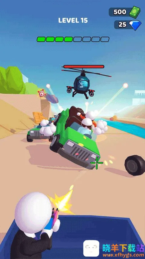 5、玩家可以瞄准并击杀敌人,也可以射击轮胎,两种方式都可以达到击败敌人的目的。