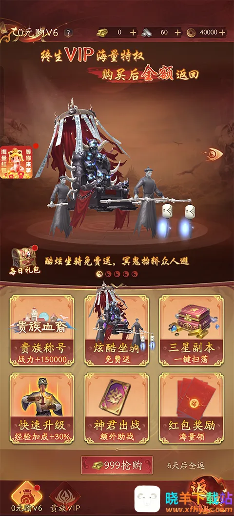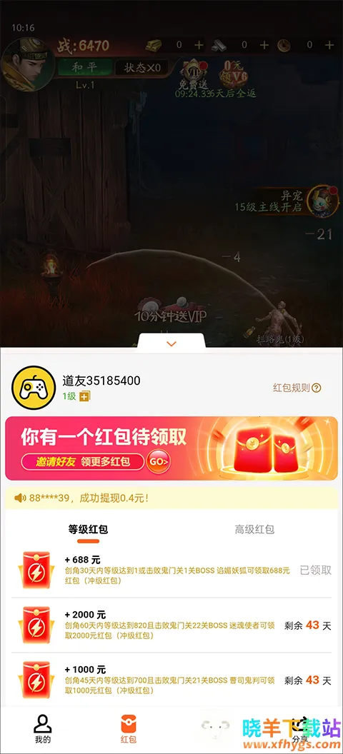 1、进入将魂师折扣版游戏内玩家就可以领取688冲级红包。