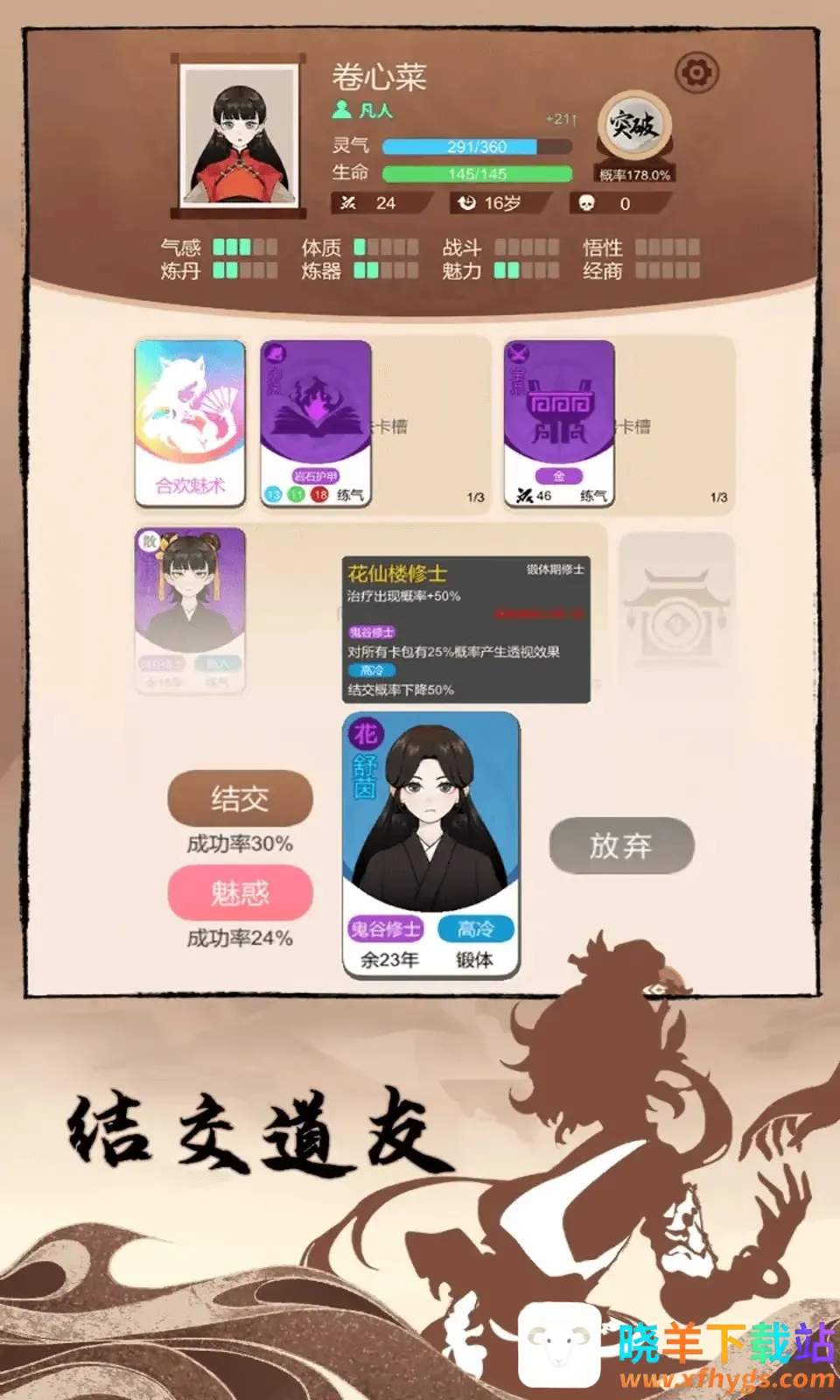 优势显著,各类卡牌属性技能独特,可自由搭配;抽卡有随机事件增添惊喜;寿命耗尽可轮回,每次轮回获点数强化天赋解锁传承。总之,卡包修仙是一款值得一玩的精彩游戏。