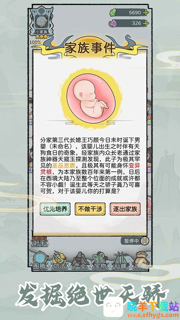 4. 开放式剧情与随机事件精彩纷呈,游戏随机性强,偶遇修仙者、成员争斗等意外事件影响家族命运,让发展进程更丰富。