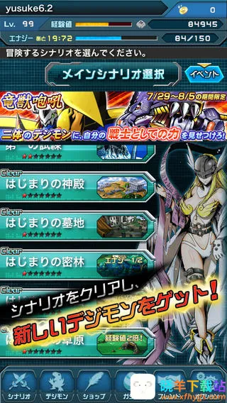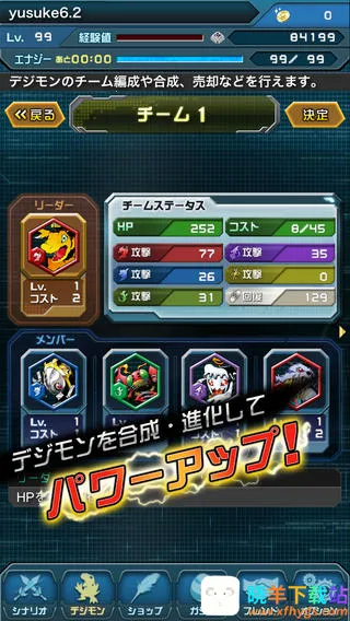 3、通过背包系统为数码兽喂食经验果实、使用药剂恢复HP/MP,并消耗技能点升级必杀技,全面提升战力;
