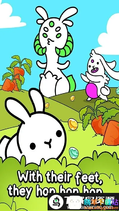 《兔子进化记安卓版》是一款休闲养成游戏。玩家开启箱子得兔子,照料其成长,相同兔子合并可进化新种。画面清新,玩法轻松。通过清理粪便获金币,滑动操作融合兔子,点击可催产出,还能买道具加速,解锁多样兔子。