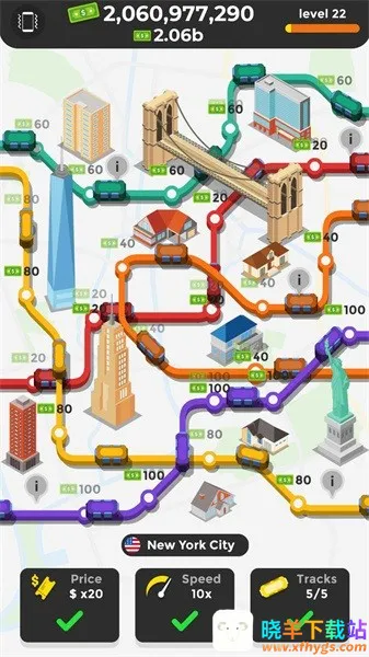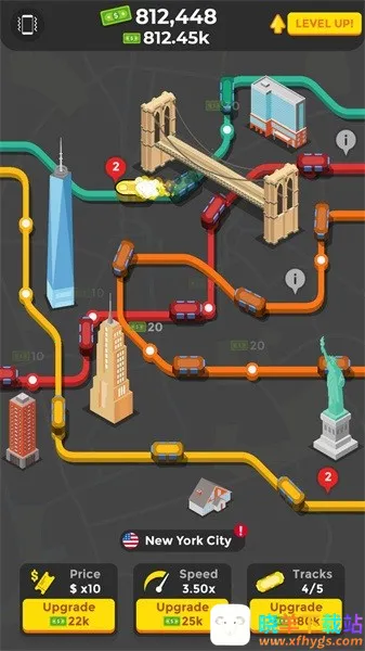 想体验经营闲置地铁站的乐趣吗?这款休闲模拟经营手游就能满足你!在这里,你可以承包大片地铁,负责所有线路。通过不断经营,让地铁赚钱来解锁更多线路,还能在各地区开设地铁。游戏操作简单,启动后现金余额与等级标识清晰可见,纽约地图、任务面板、轨道升级选项一目了然。任务系统明确给出游玩时长和操作次数目标,完成挑战就能推动游戏进程。强化速度可提升轨道载客量,提高运营效率,赚取更多资金来扩充车站规模,实现盈利增长。设定菜单还支持震动、音乐、音效开关自定义,花少量钱解锁进阶版就能移除广告干扰。游戏画风简洁卡通,界面清新,玩法自由度超高,能让你合理规划线路,建造地铁国度。快来试试,打造属于你的地铁王国吧!