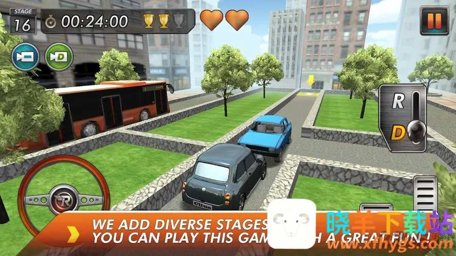 游戏玩法多样,比如放大屏幕按向下键可在狭窄处实现更精细控制;3D 场景能让你学到实际停车技巧;盲拖屏幕中心的移动点操控更轻松。这里有最现实、详细的停车位展示。