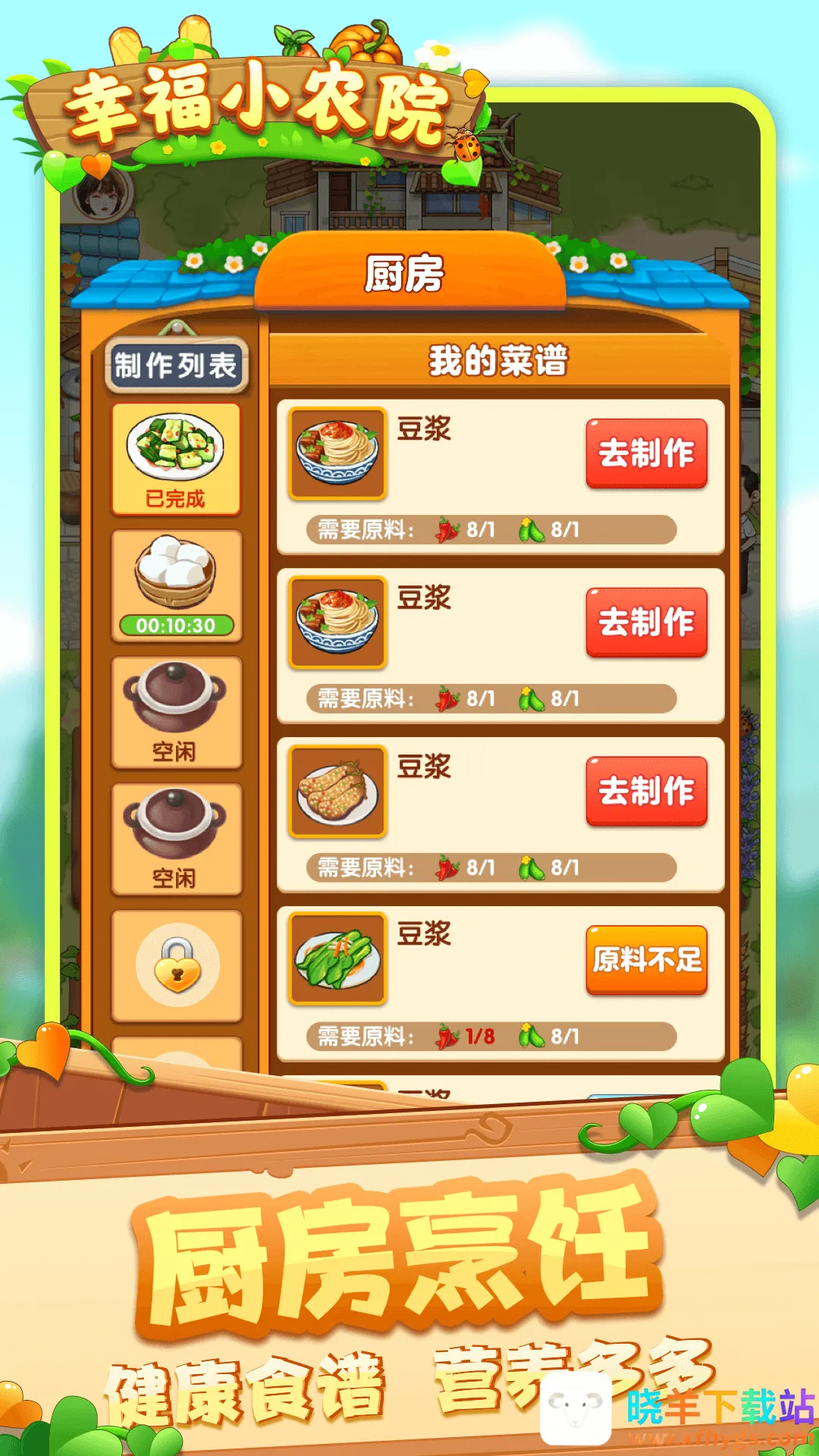 幸福小农院最新手机版是一款模拟经营类休闲游戏。玩家能在小农院种植作物、养殖家禽,完成任务获现金奖励。操作简单,画面清新治愈,还有多样玩法与丰富任务,可体验农家生活并赚取红包。