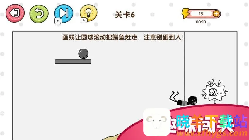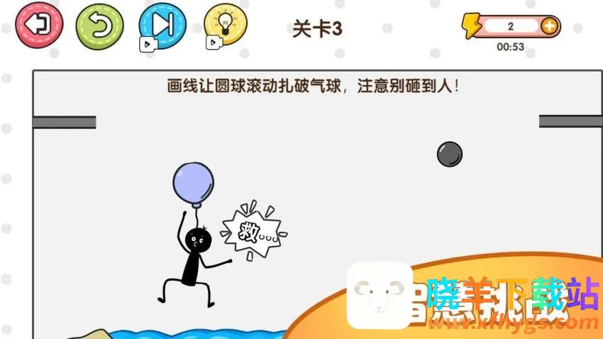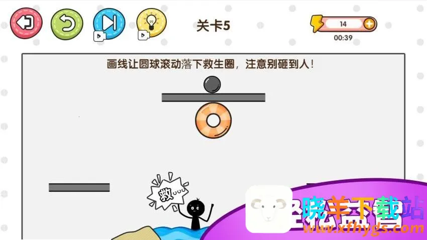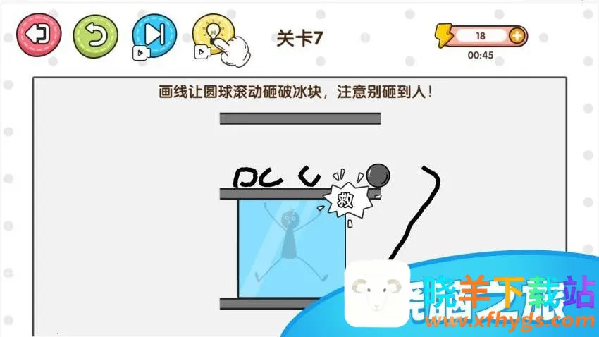3、注意不要让铁球砸到关卡中的人,玩家可以随意绘制线条。