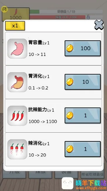 6、升级后你可以增强吃辣的能力,然后点击挑战,像全国最强吃辣省份挑战;