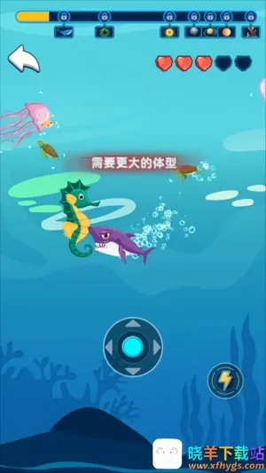 1. 游戏中有丰富多样的海洋生物,玩家可尽情吞噬。
