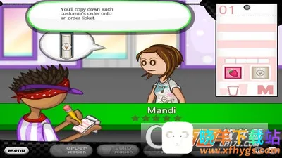 2、点击“take order”为客人点餐,将客人要的食物记录在菜单上。