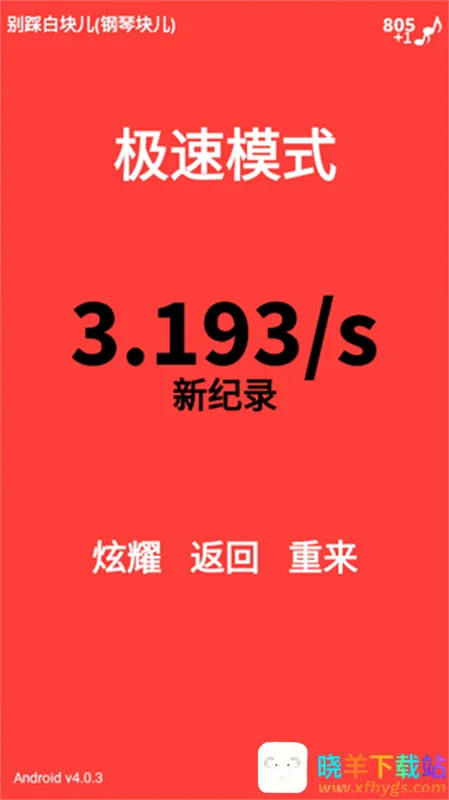 2、街机模式一旦开启,玩家必须注意黑白块儿下滑的速度。初始是不快的,但是一旦玩家可以不断点击黑块,就会逐渐加速下滑的速度(增加不多,但是的确有)所以,建议大家,没有必要太过追求速度点击黑块,只要保证跟上初始下滑的速度即可。