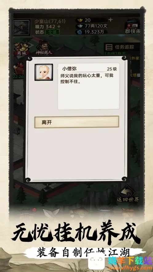 4、多途成长体系多元:无论战斗还是经营,都能在江湖中名扬四海,潜心钻研武学、结识江湖豪杰、参与比武大会、探索江湖触发奇遇等,多途径提升自己。