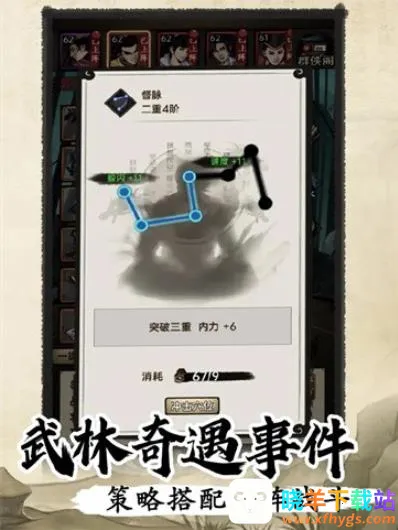 3、奇遇事件丰富多样:行走江湖触发各种奇遇,偶遇高人宝藏,关键事件改变角色命运,每次探索都有未知惊喜。