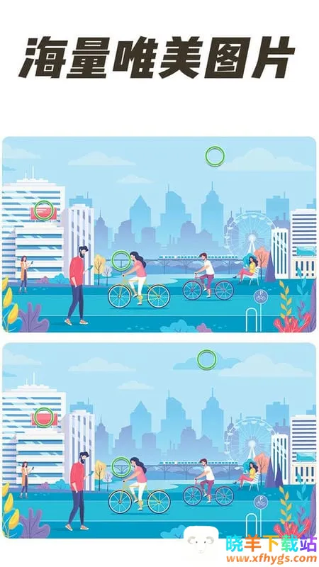 全民找茬2是一款超有趣的休闲益智小游戏。它能帮你解决无聊时光不知如何打发的问题,让你尽情享受找茬的乐趣。在游戏里,你要在两张图片中找出不同之处,操作简单,点击就行。它画面精致、画质高清,图片细节清晰,方便观察。每个关卡都有不同难度和特色,能锻炼眼力与协调性,可玩性超高。还提供多种玩法模式,满足不同挑战需求。遇到找不到的地方,能使用提示功能。而且没有时间限制,可慢慢找。你甚至能和好友一起玩,增加交互性。如果你想知道全民找茬20关答案,不用担心,游戏里一关一关的挑战过程,本身就是探索答案的乐趣所在。每过一关都有新收获,在不断尝试中,自然能找到通关20关的答案啦。快来下载全民找茬2,开启精彩找茬之旅吧!