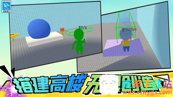 建造大楼100层是款建设游戏,提供三维网格建造空间,无固定蓝图。已建楼层能自动产金币,塔楼越高收益越高。有海量模块可解锁,操作简单,还有阶段性目标和成就,离线也能收益,可个性化塔楼。