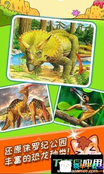 2. 提供多种互动方式,像恐龙认知拼图挑战、拖拽匹配以及寻找差异等环节,助孩子熟悉恐龙特性。