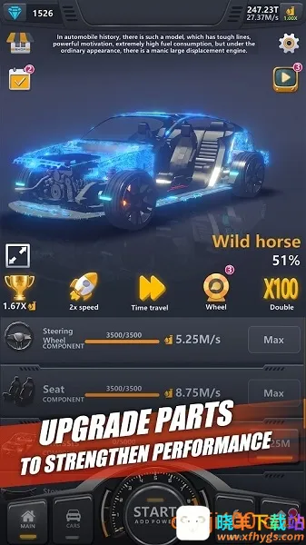 3. 突破性能上限。用最好材料打造,能吸引众多顾客。提升汽车性能,满足玩家对极致赛车的追求。
