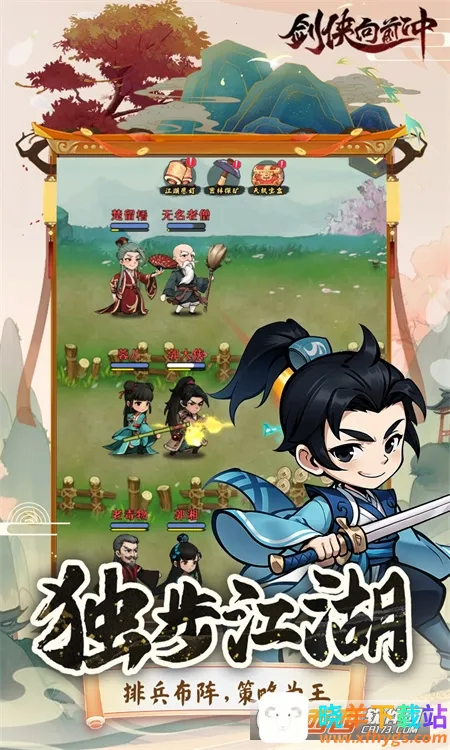 剑侠向前冲是一款极具特色的武侠放置策略游戏。玩家能成为初入江湖的侠士,历经重重劫难,在桃花岛、襄阳城、华山等地展开独特剧情与玩法,偶遇诸多知名江湖奇侠并一同战斗。