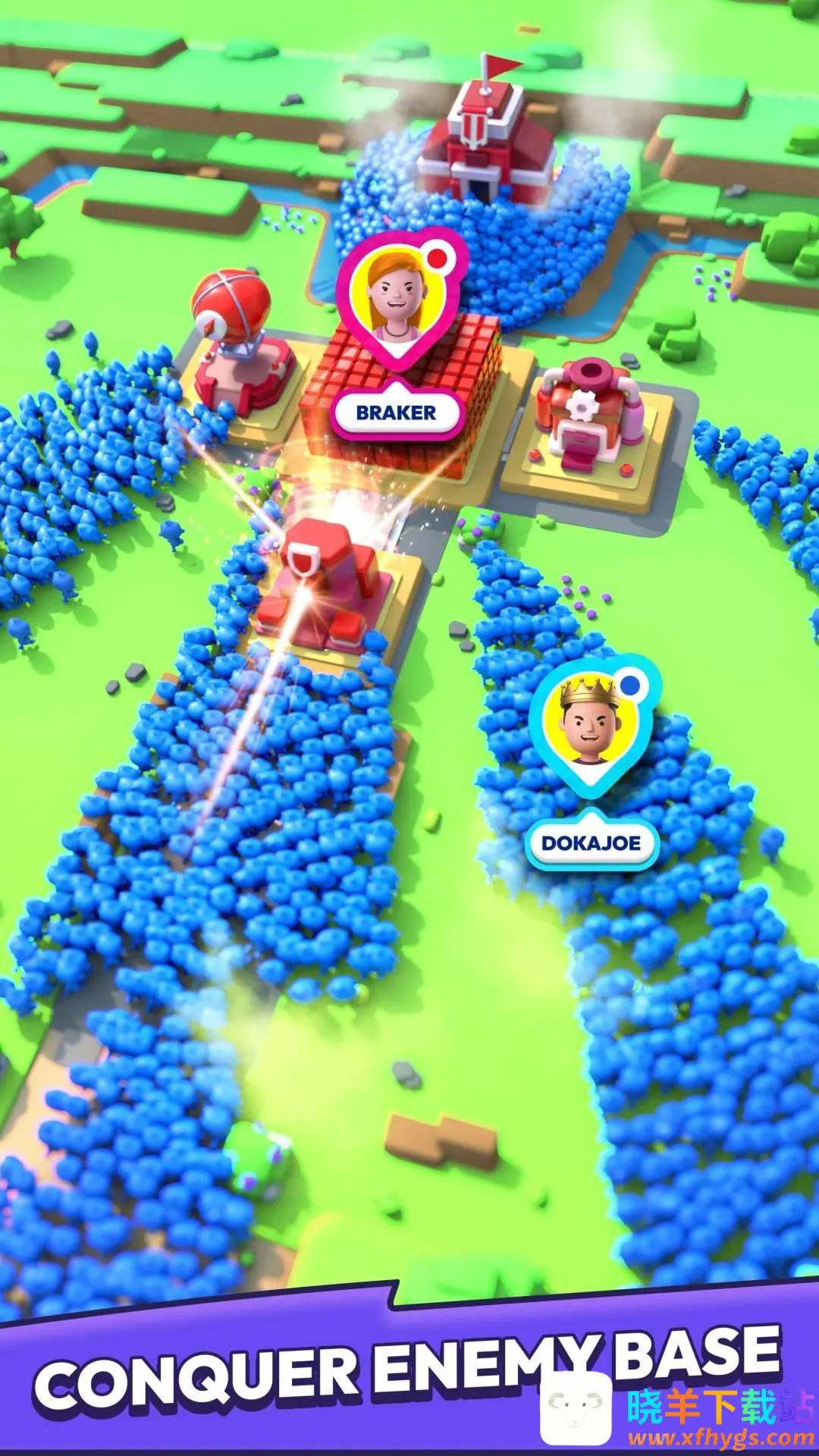 像素人控制安卓版手机版是一款策略冒险游戏。玩家通过大炮发射士兵攻占敌方堡垒,利用蓝色大门增兵、避开红色大门减员,凭借人数优势对抗敌人。内置MOD菜单可免费内购,畅享无限资源,体验自由乐趣。