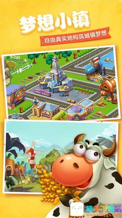 想经营属于自己的农业小镇吗?《梦想小镇》能满足你!这是一款超棒的农场模拟经营游戏,有清新3D画风。你可以自由建设小镇,从开垦土地到打造个性装饰,玩法超多。能建动物园育种,用地标建筑装点。围绕农业小镇发展产业链,开展贸易增收。游戏特色满满,有无限创意设计,可自由建造理想城市,打造专属家园;融合精彩三消玩法,轻松闯关赢奖励助力建设;定期举办全球竞赛,与各地玩家比拼赢丰厚奖品;还有独家收藏系统,收集珍贵文物古董展示成就。新手经营也不难,比如前期多发送火车换建材,选择性建设糖厂等重要工厂,合理使用现金买建材和扩充工厂格子。在这里,你能充分发挥创造力,体验不一样的经营乐趣,快来下载开启你的小镇经营之旅吧!