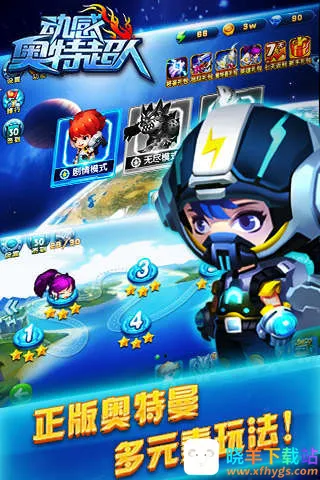 1. 游戏采用可爱萌趣美术风格,众多经典奥特英雄化身Q版造型,如赛文与艾斯等,与你共同战斗,带来畅快刺激的动作闯关乐趣。