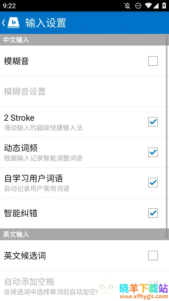 必应输入法特色丰富。它支持全拼、双拼、五笔、手写等多种常用输入法,满足不同输入需求。拥有智能搜索功能,能轻松智能搜索标点符号和标签,按首字母智能匹配文本。强大的机器学习系统不断学习用户常用词汇,使用更便捷。具备按键纠错能力,智能匹配词汇拼音,避免拼错字母打不出单词。还支持中英文九宫格输入、整句输入、动态词频调整、用户词典、URL记录、中文词语联想、英文词典等功能,以及QWERTY键盘的快捷手势,如滑动输入标点、一键清空等,带来高效独特的输入体验。