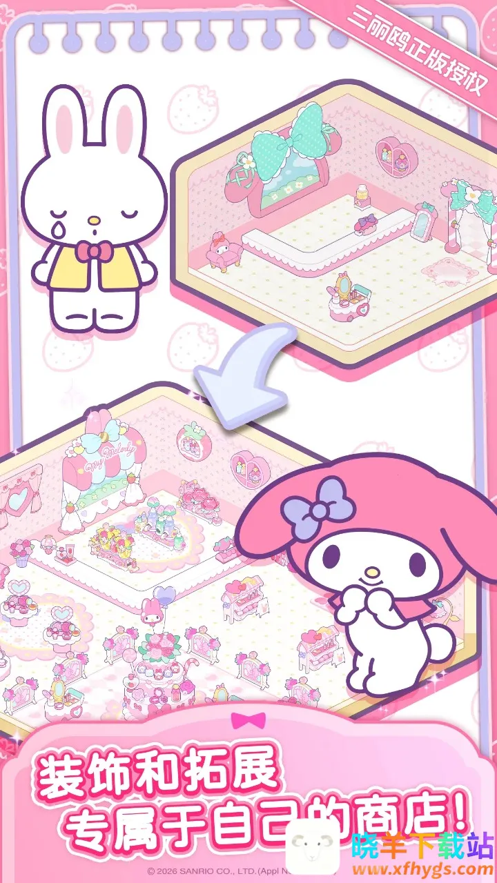玩家能根据自身喜好与创意,装饰以三丽鸥人气角色为主题的专属店铺,用500多种个性萌趣装饰展现独特魅力。