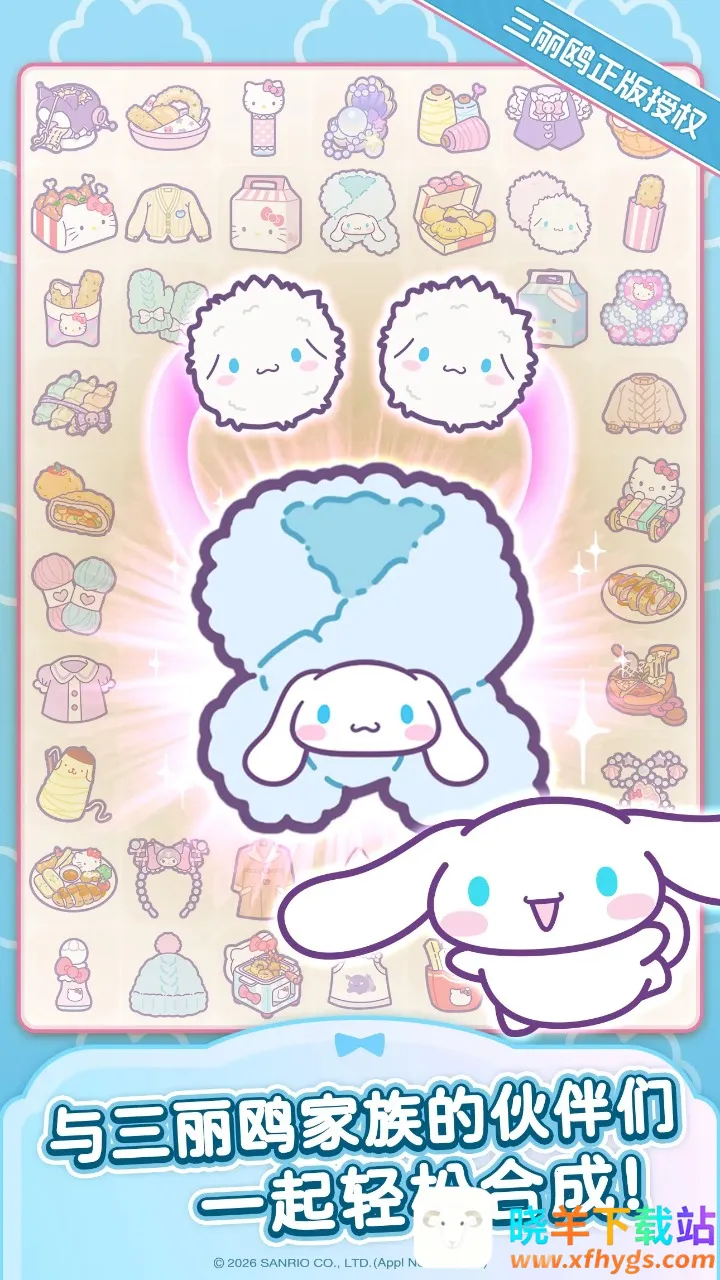 将相同的物品、角色或建筑合并,生成更高级别的物品,持续完成合成任务可解锁更多三丽鸥伙伴和萌萌装修。
