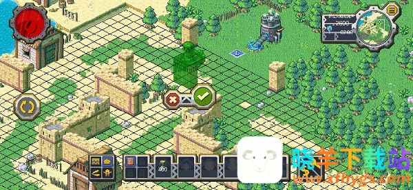 8、如果点击【√】没有反应,那就意味着没有放好,可以点击左方的按钮对围墙进行旋转,然后再点击【√】;