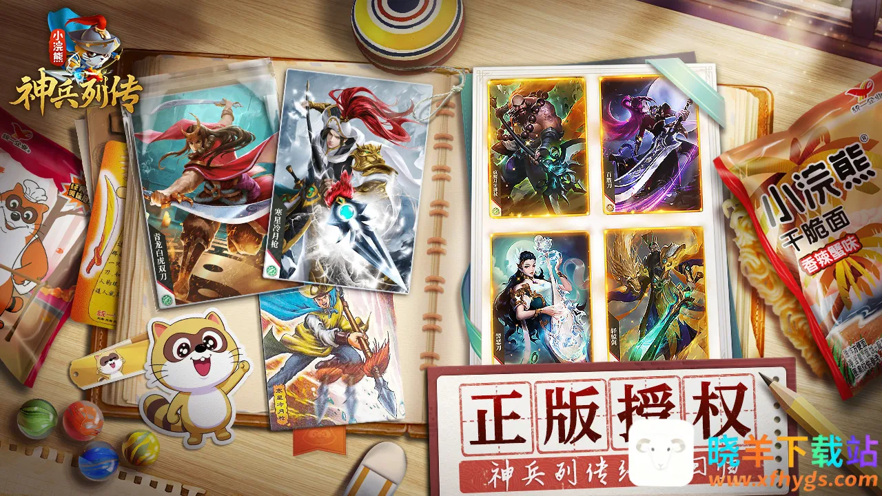 小浣熊神兵列传2026官方正版特色十足。它由统一小浣熊正版授权改编,一卡双面设计独特。九十九把传奇武器揭开华夏英雄故事,带你领略刀光剑影。全新场景升级,小卖部、干脆面唤起童年回忆,让你重拾英雄梦。在这里,智谋与武力爆表的英雄齐聚,你可组建最强阵容,体验斗智斗勇的爆爽乱斗,感受上下五千年的精彩,快来开启专属战斗之旅。